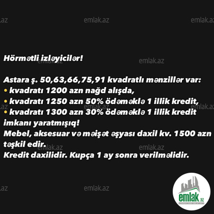 Satılır 3 otaqlı 63 m2 yeni tikili Astara