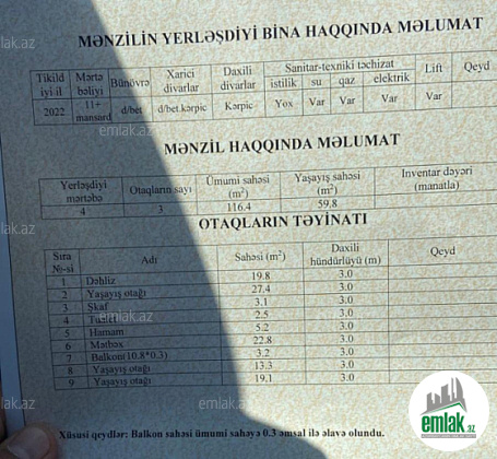 - Otaqların sayı3