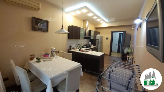 ~ 1 zal, 4 yataq otaqı, 2 qarderob otaqı, mətbəx, 3 sanitar qovşağı, 2 böyük balkon, dəhliz.