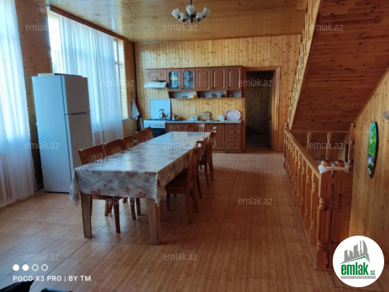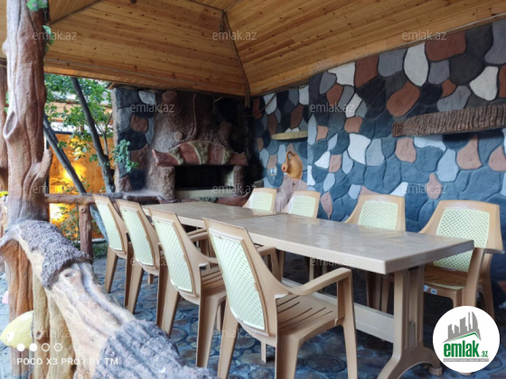 Mətbəx hissəsində mətbəx mebeli, soyuducu, gaz peçi, duxovka, yemək masası, oturacaqlar və mətbəx üçün ehtiyac olan hər cür şərait mövcuddur. Qonaq otağında isə televizor, mi box ve internet kimi şərait vardır. 4-14 nəfər arası qalmaq istəyənlər üçün əlverişlidir. Məkan tam təmirli olub, paltaryuyan, ütü, su təmini üçün əlavə böyük çənn və motorxana kimi imknaları ilə təchiz olunub.