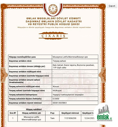 Əmlakın növüTorpaq