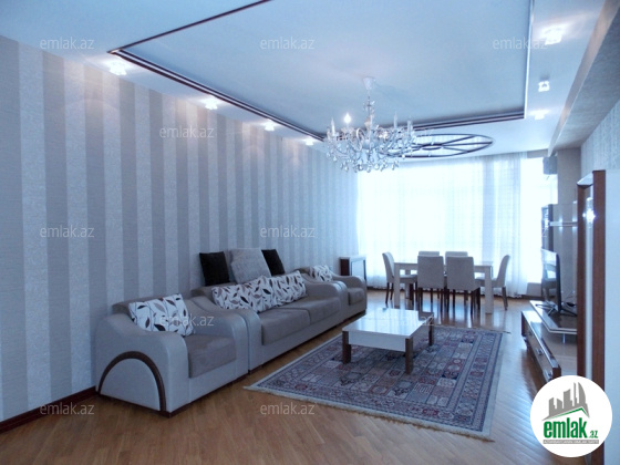 Xətai rayonu, «Xətai» metrosunun yaxınlığında, tam yaşayışlı yeni tikilidə 4 otaqlı mənzil kirayə verilir. Ümümi sahəsi 190 m2. Mərtəbə: 12/18. 2 açıq eyvanı, 2 s/q. Əla təmirli. Otaqlar ayrı-ayrılıqda. Parket döşəmə. KATV, internet-wifi. “KOMBI”, plazma tv.. 4 split-kondisionerlər. Quraşdırılmış mətbəx mebeli. Mühafizə olunan həyəti, 2 sürətli liftlər, yerüstü və yeraltı avto dayanacaqlar, uşaq meydançası.