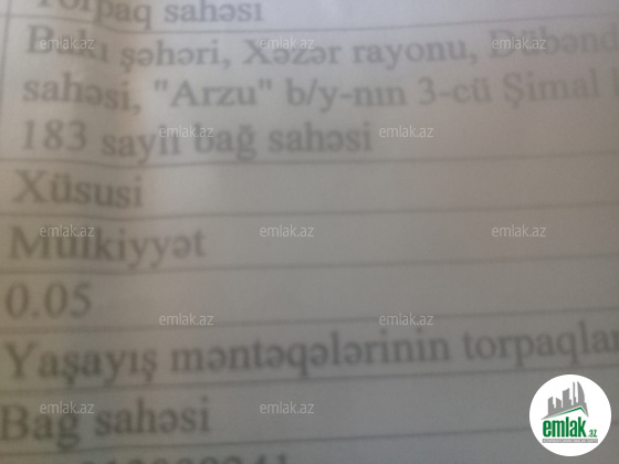 ELANI DİQQƏTLİ OXUYUN.Dənizə real məsafə 500 metr,dənizə piyada 5-6 dəqiqə.Dənizə gedən yol asfaltdır, suya çıxış problemsizdir.Sahə dəniz səviyyəsindən 30 metr hündürlükdə yerləşir.Çixariş (kupca) və texpasport var.5 sot torpaq sahəsi yaşayış məntəqələrinin torpağıdır Dübəndi bağları köhnə adı (Əzizbekovski, Xəzər) rayonu, indi Pirallahı rayonu.Yaşayış şəraiti 30 kv.m.Əslində saytda iki yarımçıq ev var, biri 91kv.m (7 *13), ikincisi 104kv.m (8 *13).Evin yaşayış hissəsində 1-ci mərtəbənin üst-üstə düşməsi dəmir-betondur.Evin təməli-beton təməl blokları.Bütün pəncərə və qapı lintelləri dəmir-betondur.Bütün divarların qalınlığı 40 sm (1 daş).Tikintidə 20.000-dən çox daş istifadə edilmişdir.Evin 2 dəmir qapısı var.4,0-2.70 Darvazası.Hasarın hündürlüyü 18 daş-3,60metr.İki köməkçi bina 4*4=16kv.m.+16kv.m.3 tonluq hovuzu var.İşig var 380 volt, 3 Faza elektrik sayğacı var,su qaz xətləri hasarın yanından keçir,shambo var.Bağda 20 cavan ağaclar və üzüm var.Həyətdə 3 maşın saxlamaq olar.Yağ dəyişdirmə və kiçik təmir üçün təftiş çuxuru var..Реальное расстояние до моря 500 метров пешком до моря 5-6 минут,улица Северная 3,183.Есть выписка(купчая) и технический паспорт.Лицевая часть 20метров в длину 25 метров (500 кв.м.) Жилые условия 30 кв.м.По факту на участке два недостроенных дома один 91 кв.м (7 13),второй 104 кв.м.(8 13).В жилом помещение проведены электрические работы..Перекрытие 1 этажа в жилой части дома железобетонное.Все оконные и дверные перемычки железобетонные.Все стены толщиной 40 см (1 камень).В строительстве использовано более 20000 камней.В доме 2 железные двери.Ворота 4,0-2,70.Высота забора 18 камней- 3, 60 метра.Есть две подсобные постройки 4 *4=16 кв.м.+16 кв.м.Бассейн 3 тонны.Подключенная электросеть Электросчетчик 3 фазы,газовая и водяные трубы проходят по забору,есть шамбо.Есть в саду 20 молодых деревьев и виноград