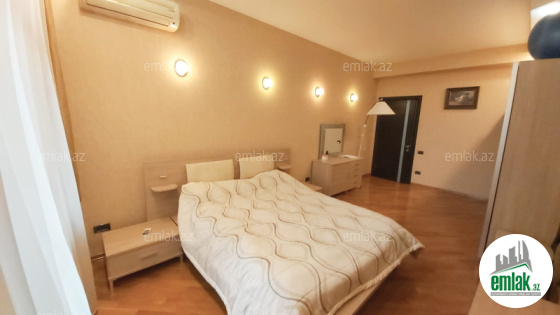 ~ 1 zal, 4 yataq otaqı, 2 qarderob otaqı, mətbəx, 3 sanitar qovşağı, 2 böyük balkon, dəhliz.