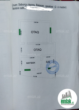 Ev Sabunçu rayonu Balaxanı qəsəbəsində yerləşir (amma ərazi Sabunçu rayonu gedir, Zabrat yoluna yaxın). Həyət evidir. 36.5 kvm-dir. 5 daş kürsülüdür. Kommunalda problem yoxdur. Məktəb, market və marşruta yaxındır. Koroğlu metrosuna 5 dəqiqəlik məsafədədir.