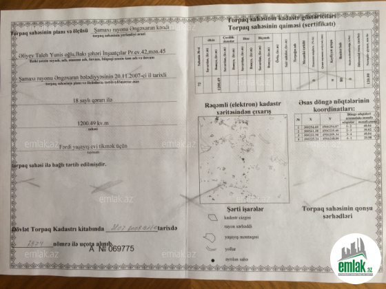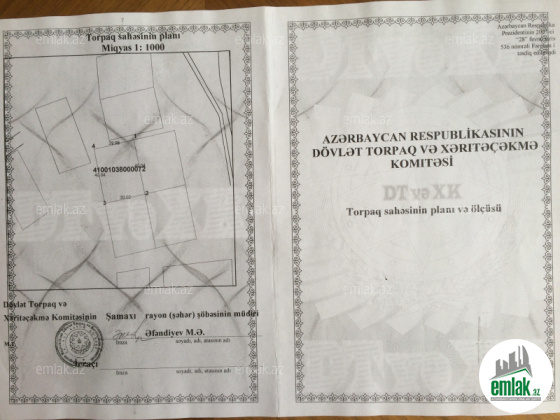 Şamaxı rayonu, Melhem kendinde 12 sot torpaq sahesi satilir,belediyye senedidir.Torpaq kadastri verilib.