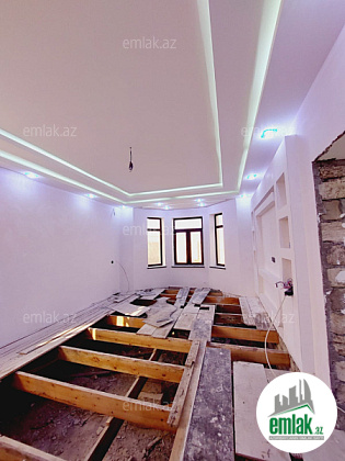 Həyətinin ümumi sahəsi 7 sot, tikililərin sahəsi 250 m2-dir. Əsas binanın 1-ci mərtəbəsində 1zal+mətbəxt +yatax otaqi +sanuzel 2ci mərtəbədə 4yatax +mətbəxt +kardirov +sanuzel evin 20 faiz işləri qalib SƏNƏD KUPCA