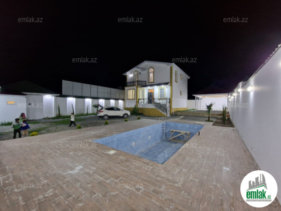 əsas yoldan 200 metr içəri.dağ mənzərəli yeni təmirdən çıxmış möhtəşəm həyət evi.4 yataq otağı 1 studio mətbəx.həyətdə besetka yay mətbəxi.hovuz qızandır.hovuzun ölçüsü 3.6*8.hər mərtəbədə sanuzel və həyətdədə sanuzel var.ev əşyaları ilə birlikdə satılır.