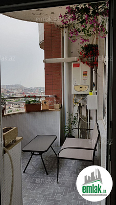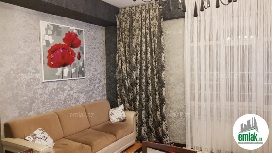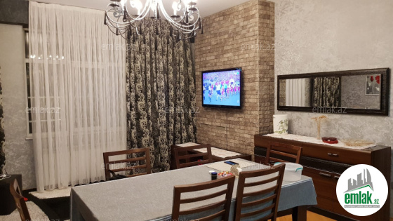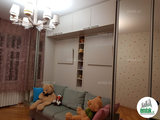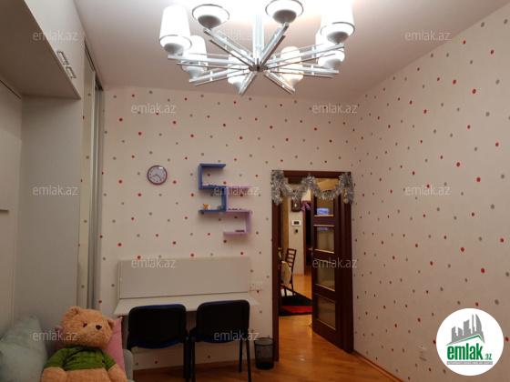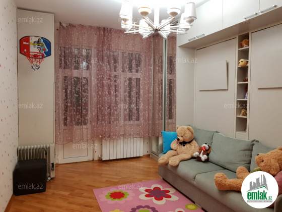 Mənzil mətəbx-studiyadir və 3 yataq otagi hər otagin pəncərəsi mövcütdur,döşəmə parket,2 sanitar otagi,istilik sistemi kombi,kondic.qaz su işiq daimidir,2 balkon,2 lift,geniş muxafizə olunann həyət.