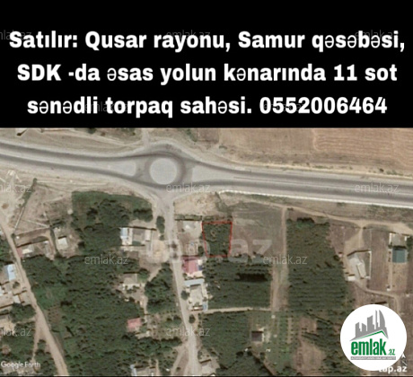 Qusar rayonu, Samur qəsəbə SDK-da əsas yolun kənarında 11 sot sənədli torpaq sahəsi.