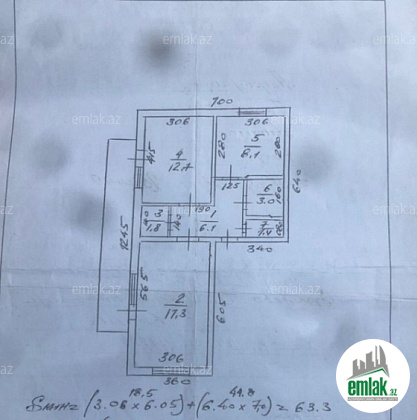 60 m² | 2 otaq (qanuni)