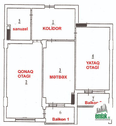 Mənzili rahatlıqla 3otaqa çevirmək mümkündür.