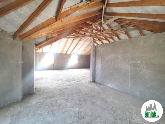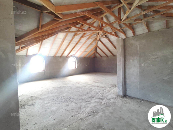 Qaz, su, işıq var. 2 mərtəbə + mansard. Evin yanında qaraj yeri, 6 otaq, 2 sanitar qovşaq və 1 mətbəx + geniş hündür mansard. Mərtəbələr arası, pilləkan, pəncərlərin üzəri, stoykalar hamısı betondur. Divarlar qoşa divardır. Mansard mərtəbədən hündürdür, yanlar 2.40, mərkəz 3.70-dir. Ev şəxsi istifadə üçün tikildiyinə görə, tikintidə keyfiyyətli inşaat materiallarından istifadə edilmişdir. Evin ətrafında drenaj quyusu var, yağış zamanı evin altına su getməsin deyə. Torpağın evin hər birinin sənədi var. Məkan olaraqda ideal yerdədir. Yaxınlığında bütün lazımi iaşə obyektləri var. Ətraflı məlumat üçün zəng edə, vatsapdan yaza bilərsiniz. Xidmət haqqı 1%