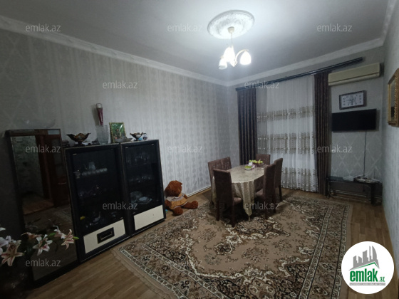 Qəsəbənin tam mərkəzində İcra Hakimiyyətinin , Doğum Evinin , Heydər Əliyev parkının yanında 3 mərtəbəli binanın 1 ci mərtəbəsində otaqların hündürlüyü 3 metr olan ev əşyalı satılır. Evin ön hissəsində pəncərənin qarşısında xudmanı şəxsi bağı və əldamısı var. Səliqəli baxılmış evdir. Evdə kirayəyə verilməyib. Qeyri yaşayış sahəsi üçün istifadə etmək çox əlverişlidir.