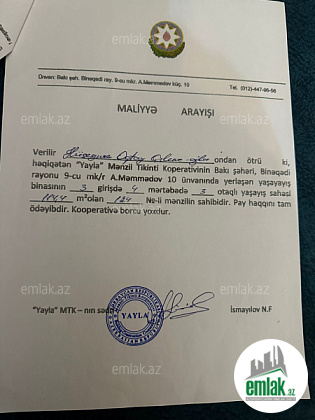 - Əmlakın növüYeni tikili