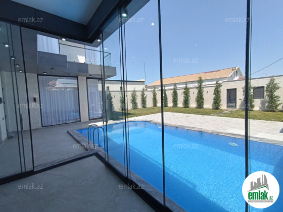 Mərdəkan Bravonun yaxınlığında 4 sot torpaq sahəsində inşa olunmuş 2 mərtəbəli bağ evi satılır.Ümumi sahəsi 210 kv olan evin 1 ci mərtəbəsində 1 zal, mətbəx,1 s/q, 2 ci mərtəbəsində isə 3 yataq otağı,otaqların hər birinin eyvana çıxışı var,2 s/q mövcuddur.Həyətində filtrli hovuz,s/q, cam balkon, dekorativ ağaclar,qazon var.Sənədlər qaydasındadır.