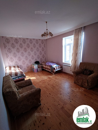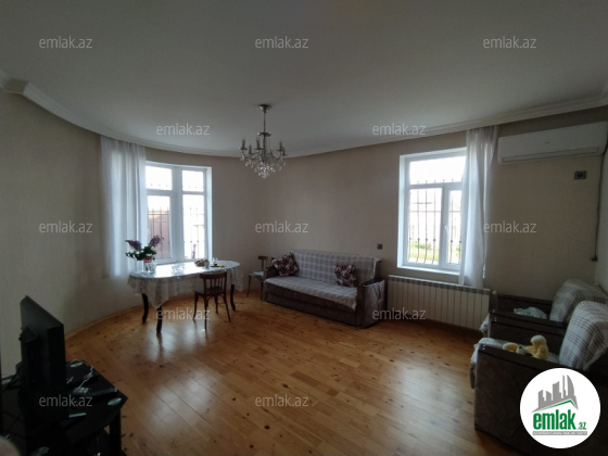 Ev 3 sotun icindedi. 77 kv 3 otaqli yaxsi temirli evdir. kombi sistemi var. qabaginda heyeti arxasinda bagi var. arxa terefde 5 tonluq yeralti çəni var. qabaq terefde 1 tonluq çəni var.yay metbexi var.padvali var. paket kupca var. İpotekaya yaralidir.
