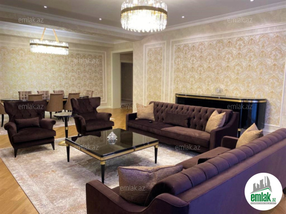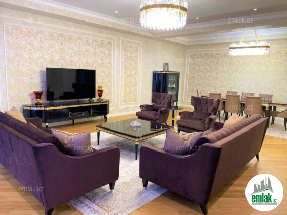 Premium binada, Ümumi sahəsi 265 kv metr olan 4 otaqlı super təmirli mənzil əşyalarla birgə satılır.