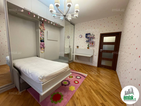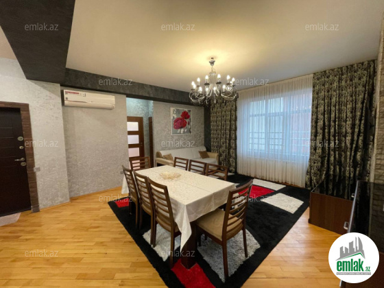 Əla təmirli ümumi səhəsi 122 kv.m. mənzil 4 otaga düzəlib(mətbəx-studiya və 3 yataq otagi) 2 sanitar qovşagi,istilik kombi,qaz su işiq daimidir.quraştirilmiş mətbəx mebel.