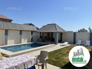 Mərdəkan qəsəbəsində yerləşir, sahəsi 4 sot, 3 yataq otağı, 2 sanitar qovşağı, 1 qonaq otağı. Otaqlar mebellərlə təciz edilib, 2 kondisioner, televizor, paltar və qabyuyan maşınlar, soyuducu, internet, kombi var, qaz və su daimidir. Həyətdə hovuz, manqal və besetka mövcuddur. Ev daimi yaşamaq üçün kirayə verilir.