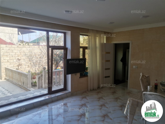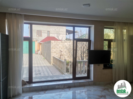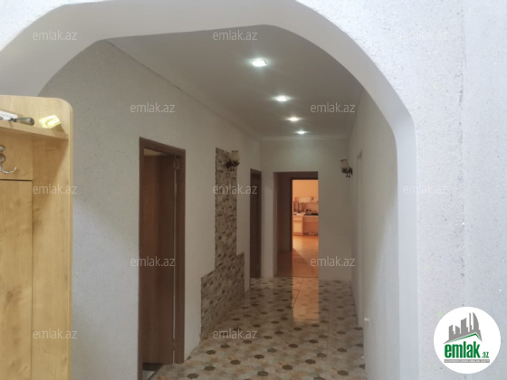 Salam. ev esas yolun 20mtr məsafədə yerleshir. ev tam temirlidi və ümumilikdə 4 yataq otagi/metbex/qazanxana/qonaq otagi ve evin umumi sahesi 205kv. torpaq sahəsi 4.8 sot ve bunun 205 eve diyer isə heyətinə ayitdi. evin 80% isti poldu, su qaz ishiq daimidir
