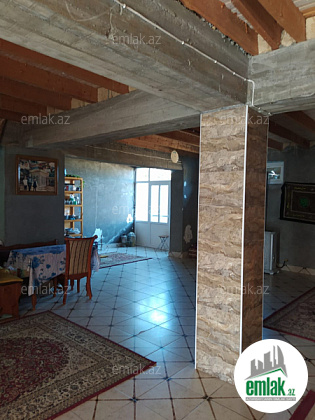 2 mertrbeden 4 otaq 1 zaldan ibaret yeni tikili ev 5 sotun icindedir ev cox keyfiyyetli zellzeleye davamli tikilib her 2 mertedede hamam, tualet ,metbext var kombi sistemi,isti doseme, kondinsener internet naves var.Evin 40 sot bagi var bag ile evin arasinda divar cekilib evin diymeti ile birlikde satilr. birinci mertebede kasmetik isler qalib. 2 ci mertebede otaqlardan balkona cixis var.bagda her cur meyve agaclari var. Bakida menzille barter ola biler.Ev kohne avtovagzalin yaxinliginda trasdan 150 metir mesafede yerlesir.razilasma var.