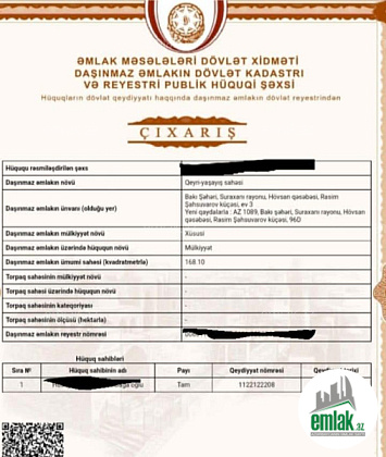 TƏCİLİ ŞƏXSİ OBYEKTİMİ SATIRAM !!! Suraxanı rayonu, Hövsan qəsəbəsi, Rasim Şahsuvarov küçəsində - Hövsanda “Pekarni” və “Port” adları ilə məşhur olan ərazilərin arasında yerləşir. 5 otaqlı obyektin tikili sahəsi 180 kv.m-dir və 2 obyektin birləşməsidir. Geniş zal, ofis, soyunub-geyinmə otağı, anbar, mətbəx və sanuzeldən ibarətdir. Su və işıq daimidir. Obyektin ön və yan tərəfləri olmaqla 2 giriş-çıxışı var. Hal-hazırda “OBA” marketlə bağlanmış 15 illik müqaviləyə əsasən 1300 AZN dəyərində (-14% vergi) icarədədir və bu ilin yanvar ayından fəaliyyətə başlayıb. Müqavilə obyekti alan şəxsin adına keçəcək. Nəqliyyatın və piyadaların intensiv hərəkətdə olduğu ərazidir. Əsas yolun üzərindədir. Yola, dayanacağa və ehtiyac duyulan bütün iaşə obyektlərinə çox yaxındır. Ətrafı tam yaşayışdır. Sənədi Qeyri-Yaşayış Çıxarışıdır (Kupça). Qiyməti 290 000 AZN. Real alıcı ilə razılaşma olacaq!