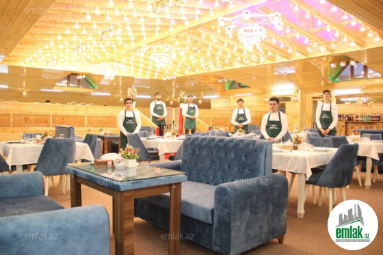 Salam Yeni güneşlide qartal abidəsinəm sağa 100 metr irəlidə 3 mertebeli və 15 sot bağı olan restoran və terası var zal ümumilikde 250-300 nefer bağ 300-350 nefer tutum var her bir apartı var qablar vs... gir işlətdir heçnəyə ehtiyac yoxdu hal hazırda işləyir əlavə sualı olan zeng etsin 5000 depozit arenda Aylıq 5000 azn Ofis haqqı 25% Obyektddə İçki verilməmək şərti ilə