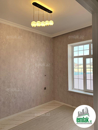 Bine qesebesi Esas yola 400-metr mesafede 3-otaqli ev satilir. Kursuludur, cut dashla tikilmishdir. Qaz, su, ishiq var. İstilik sistemi kombidir. Otaqlari genish ve ishiqlidir. Temirinde keyfiyyetli materiallardan is...
