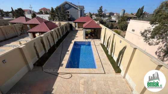 Merdekan qesebesinde daimi yaşayış olan məhəllədə 5 sotda 1 mərtəbə 170 kv.m 4 otaqlı əşyali bağ evi satılır..1 zal, 3 yataq otağı, mətbəx, holl və 2 sanuzeldən ibarətdir. Yüksək zövq və keyfiyyətlə təmir olunub. Otaqlarda pərdə və lyüsturları asılıb, İşıqlandırma sistemi, isti döşəməsi, tam hazır sanuzelləri var. Su, qaz və işıq daimidir. İstilik sistemi kombidir. Həyətində filterli hovuz, manqalxanası,qaraji, yay və qis mətbəxi cambalkonla yigilmiş, pultla idarə olunan darvazası,söhbətgahı, dekorativ ağacları, landşaft dizayn, sensorlu gecə işıqları var. Yolu asfalt örtüklüdür və ilboyu yaşamaq üçün əlverişlidir. Kupça (Çıxarış).
