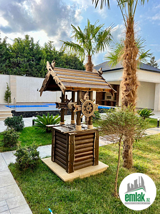 Bakı Bağları şirkəti sizə ekoloji təmiz Mərdəkan qəsəbəsində Vətən restoranına yaxın əsas yoldan 50 metr məsafədə 7.5 Sotda 1 mərtəbə 220 kv.m 4 otaqlı super bağ evini təklif edir. Bağ evi zal, 3 yataq otağı, mətbəx, camaşırxana, qarderob otağı, holl və 3 sanuzeldən ibarətdir. Otaqlarda asılmış pərdə və lyüsturları, duş kabinalı sanuzelləri, isti döşəməsi, quraşdırılmış işıqlandırma sistemi var. Ev yüksək zövq və keyfiyyətlə təmir olunub. Su, qaz, işıq daimidir. İstilik sistemi kombidir. Həyətində geniş filterli hovuzu, terras, besedka, manqalxana, qaraj, pultla idarə olunan darvaza, yaşıllıq ərazisi, dekorativ ağacları və gülləri, sanitar qovşaq, su anbarı, sensorlu gecə işıqları var. 4 mövsüm yaşamaq üçün əlverişlidir. Yolu asfaltdır. Kupçası (Çıxarışı) var. Start qiyməti 515 000 AZN. Qeyd : Bakı ətrafı qəsəbələrdə, xüsüsən də Mərdəkan, Şüvəlan, Bilgəh, Nardaran və s. ərazilərdə satışda olan digər bağ evləri və villalarımız var. Buyurun bizə müraciət edin.