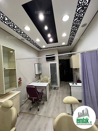 Gəliş gediş olan yerdə yerləşir. Hər bir şəraiti var. Kondisioner, TV, WIFI, Ariston, Mərkəzi istilik sistemi, Su, işıq, isti su daimidir. Təmiri əladır. Özünə aid sanuzeli var. Hal hazırda arendadadır. Balaca yer olmasına baxmayaraq illərdir lazer salonu kimi fəaliyyət göstərir. Qiymətdə razılaşmaq olar.