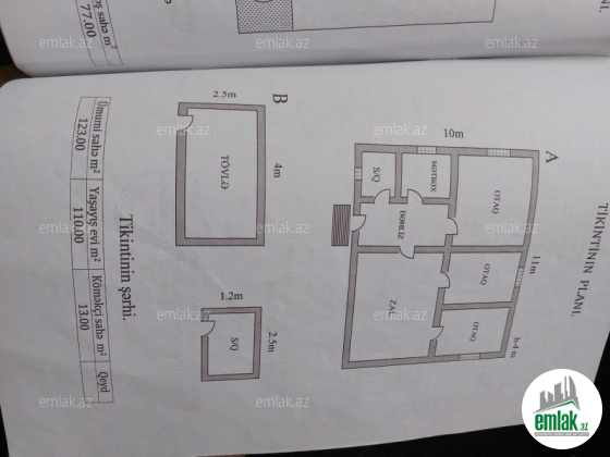 Yeni Suraxanı qəsəbəsi 3 sot torpaq sahəsində qoşa daşla tikilmiş ümümi sahəsi 123 kvadrat metr olan heyet evi satılır. Ev 4 otaqdan ibarət hamam tualet 2 eded Ev 5 daş kürsüdə temirli qaz su işıq daimidir kanalizasiya sistemi dövlət. Evin iki terefli yolu iki market maşurutlara 89 NÖMRELI Məktəb yaxin bütün şəraiti var .heyetde ağaclar qladovka badval giriş cıxış real alıcılar zəng etsin.qiymet endirlmiş qiymetdir.106 nomrəli avtobus evin onundən kecir.