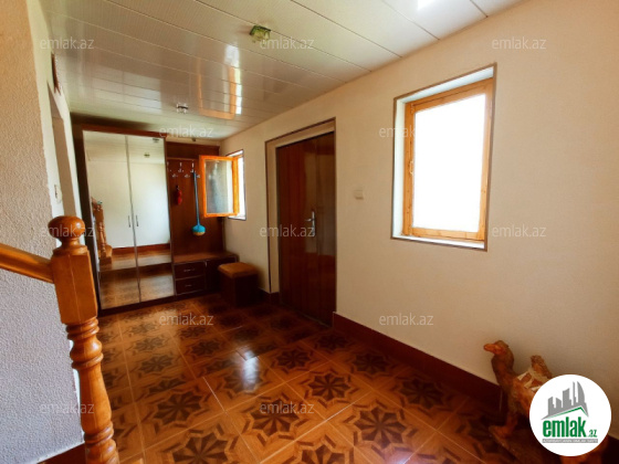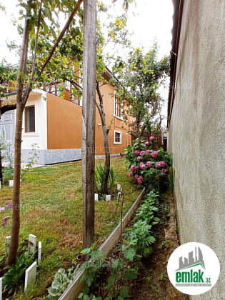 Ev 2 mertebedi. Heyetinde 4 tonluq su anbari var. 48 km² qaraji var, meyve agaclari var. Qazı, suyu, işığı daimidi. Eve baxmaq ucun axsam saat 6 dan sora gele bilersiz.233 nomreli mektebin yani