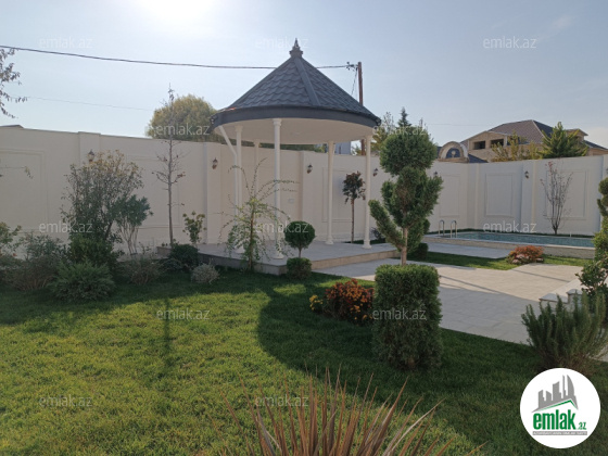 Tam Əşyalı!! Bakı Bağları şirkəti sizə ekoloji təmiz Mərdəkan qəsəbəsində əsas yoldan 20 metr məsafədə 3.7 Sotda 1 mərtəbə 170 kv.m 4 otaqlı super bağ evini təklif edir. Bağ evi zal, mətbəx, 3 yataq otağı, qarderob, holl...