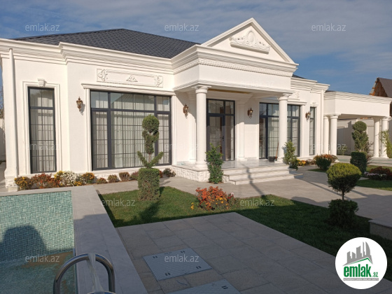 Xezer rayonu Merdekan qesebesi \'\' Veten \'\' restoranina yaxin 3.5 sot torpaq sahesinde 1 mertebeli 150 kvm bag evi satılir. holl ,1 zal , metbext , 3 yataq otagi,2 sanuzeli .qarderob movcuddur.Heyetinde hovuz,bisetka ...