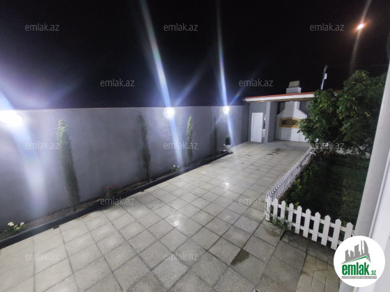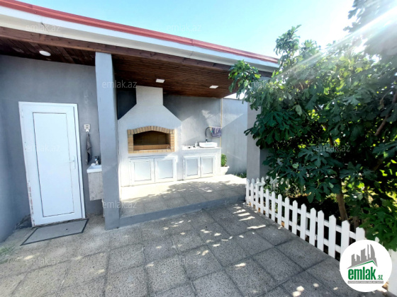 Təcili satılır.Xəzər r-nu Buzovna q-si Malik Musayev küçəsində 1 mərtəbəli 3 otaqlı sahəsi 120 kv/m olan bag evi satılır.Ev əla təmirlidir.3.5 sotun içində tikilib.Otaqlar geniş işıqlı və əşyalıdır.Qaz su işıq daimidir.Həyətində manqalı,sanuzeli, dekorativ və meyvə agacları mövcutdur.Sənədi kupçadır.