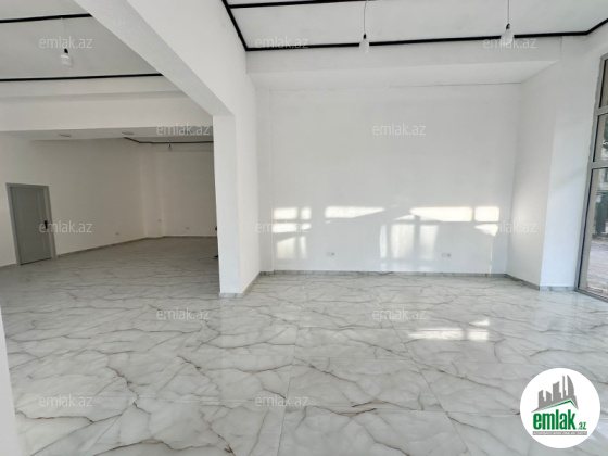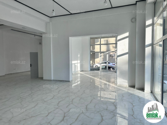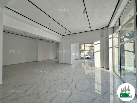 Qurluşu----4 uca vitrin pəncərəsi olan (2-si ön və 2-si yan tərəfdə, 4 metr ucalığı ilə), geniş mətbəx hissəsi və sanitar qovşağı var.İsti döşəmə ilə təchiz olunub.Obyekt 3 Faaza elektriklə təmin olunub. 2 sanitar qovşağı, ləvazimatların saxlancı üçün 1 kiçik otağı olan, , kamera, internet xətti və divarlarda işıqla yanaşı internet rozetkaları ilə də təchiz olunub. Üzunmüddətli icarəyə götürənlər üçün güzəştlər verilə bilər. Obyektin önündə parkinq üçün normal imkan var