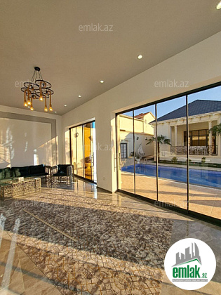 Həyətində yay-qış mətbəxi, filterli hovuzu, söhbətgahı, manqalı, geniş yaşıllıq ərazisi və növbənöv dekorativ ağacları var.