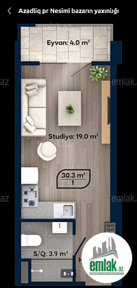 Satılır 3 otaqlı 36 m2 yeni tikili Nəsimi bazarı