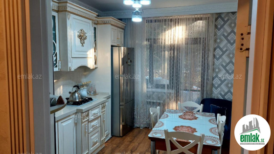 Mənzil Binəqədi rayonunda yerləşir. MTK-ya məxsus yeni tikili 5 mərtəbəli apartmanın 3-cü mərtəbəsidir. Ümumi sahəsi 132 kv/m, radnoy 3 otaqdır. Qaz, su, işıq daimidir, istlik sistemi kombidir. Təmir üçün tam keyfiyyətli məhsullardan istifadə olunub. Mənzildə mətbəxdə olanlar və mətbəx mebeli qalır. Digər otaqlarda olanlar isə danışıla bilər. Mənzil 2 ailə yaşamağı üçün tam əlverişlidir. Otaq daxilində sanitar qovşaq mövcüddür. Bina olduqca prestijli yerdədir, əsas yolun kənarında metroya yaxın məsafədədir, yaxınlığında Bazarstore, Army market, Araz market və s. obyektlər yerləşir. Mənzilin sənədi çıxarışdır(kupça), həm nağd, həm də ipoteka şərtləri ilə təklif olunur.
