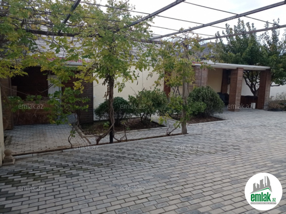 Həyət keramik plitə ilə döşənilib, besedkası var.