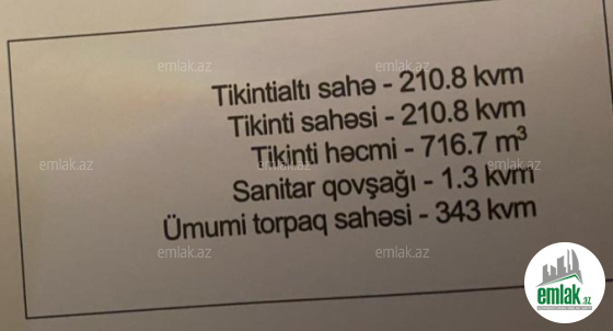 Evin sahəsi 99,6 kv.m, həyətin sahəsi isə 86,4 kv.m-dir.