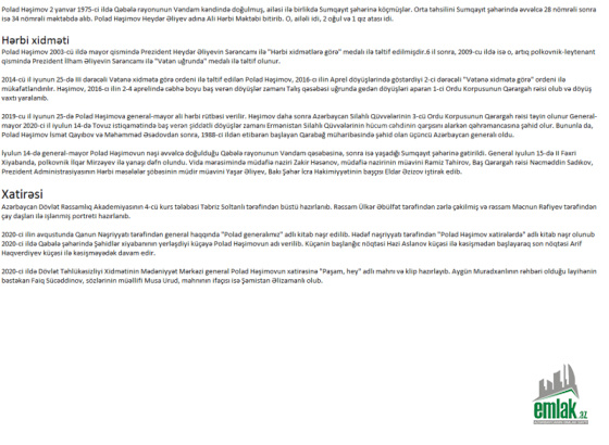 - Təyinat: həyət evi və torpaq alqı-satqısı üzrə xidmət göstərilir