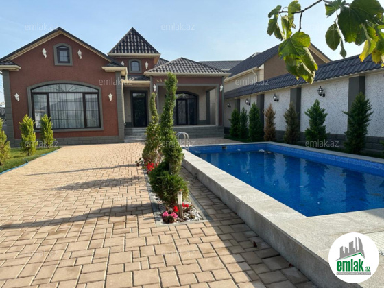 Xezer rayonu Merdekan qesebesi \'\' Veten \'\' restoranina yaxin 3.5 sot torpaq sahesinde 1 mertebeli 150 kvm bag evi satılir. holl ,1 zal , metbext , 3 yataq otagi,2 sanuzeli .qarderob movcuddur.Heyetinde hovuz,bisetka ...