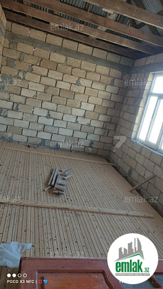 Ev 2 mertebedi. Heyetinde 4 tonluq su anbari var. 48 km² qaraji var, meyve agaclari var. Qazı, suyu, işığı daimidi. Eve baxmaq ucun axsam saat 6 dan sora gele bilersiz.233 nomreli mektebin yani