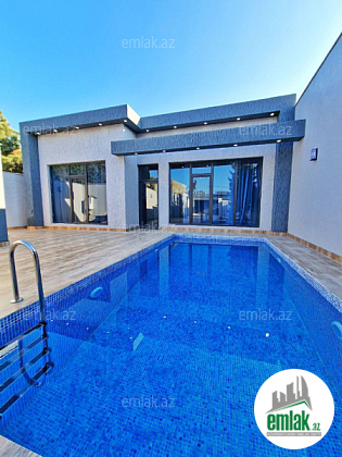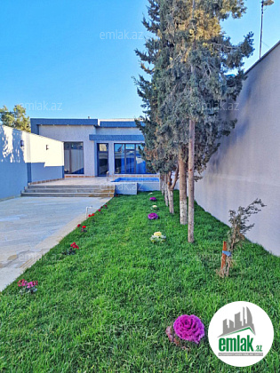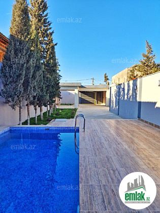 Həyətində filterli hovuzu, manqalı, söhbətgahı, maşın saxlamaq üçün ərazisi və növbənöv dekorativ ağacları var.