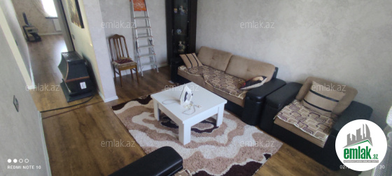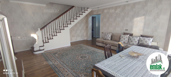 Ev 2 mertebedi. Heyetinde 4 tonluq su anbari var. 48 km² qaraji var, meyve agaclari var. Qazı, suyu, işığı daimidi. Eve baxmaq ucun axsam saat 6 dan sora gele bilersiz.233 nomreli mektebin yani