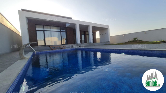 Evin önündə verandası, filterli hovuzu, manqalı, geniş yaşıllıq ərazisi və maşın saxlamaq üçün yer var.