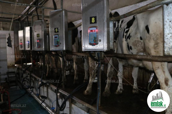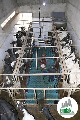 240 m2 lıq sağım zalı ( ingiltərə və türkiyə istehsalı olan 2x6 paralel sağım sistemi ilə təchiz olunub)